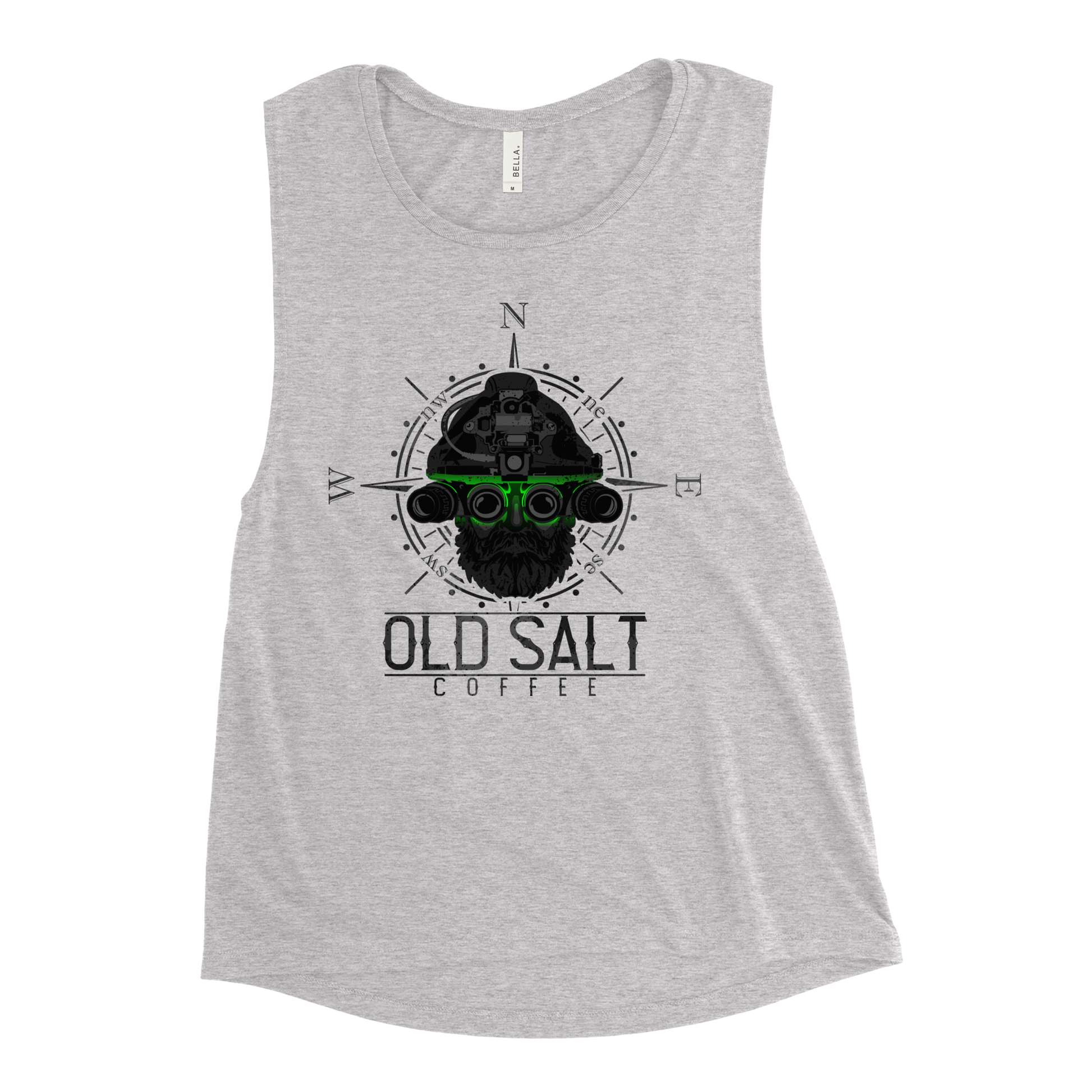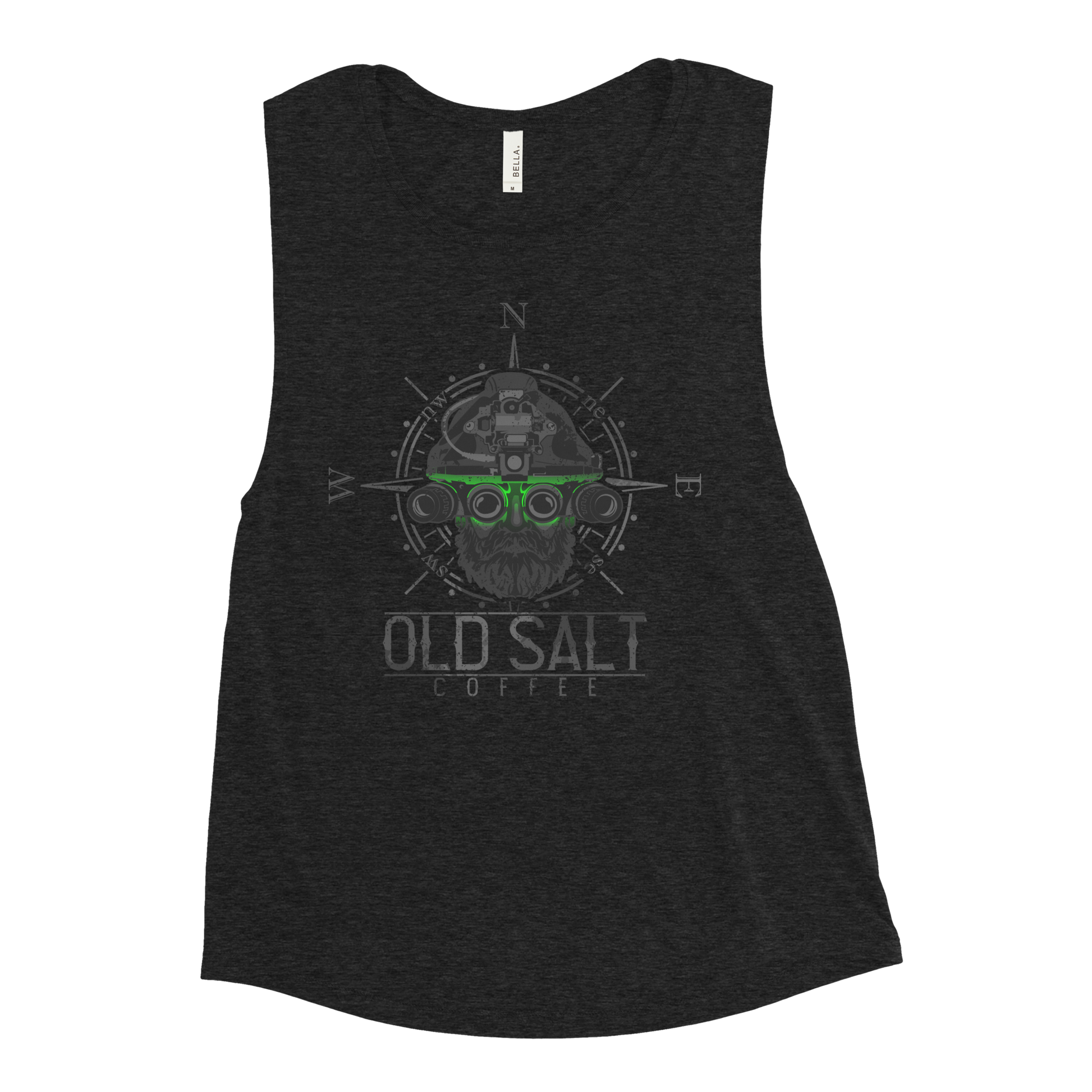 FREE SHIPPING! The “Green Eyed men” of Naval Special Forces - they DO own the night. Inspired from the battlefields of Afghanistan where the Taliban called them the "Green- Eyed Men". Cry Havoc! Let slip the dogs of war! Old Salt Coffee tanks are a direct reflection of our company’s mission statement: Bring Sailors together - past and present, at sea or ashore - to share their sea stories over a cup of Old Salt Coffee. These tanks will start the conversation; it isn’t just that they are high-quality, kick-butt torso coverings. It is just a tank after all. It's probably like other tank tops you have...but not. It's just way cooler. Old salt is new, so you can have something no one else does and be that cool guy or gal. Or, if you're over things that are too mainstream, wear it around jamokes who wear BRCC stuff, and piss them off by telling them Old Salt Coffee is better. This comfortable muscle tank is soft and flowy with low cut armholes for a relaxed look.